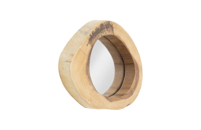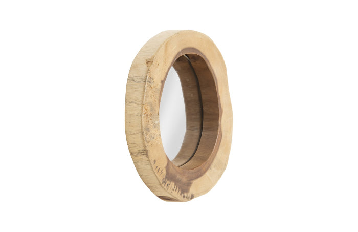 El ejemplo perfecto de cómo utilizamos incluso las piezas más pequeñas de madera natural que obtenemos, el Espejo es una pieza escultórica creada a partir de un corte final de forma libre de madera de chamcha que fue ahuecada y transformada en un espejo.