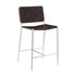 Los elementos de mediados de siglo lideran la estética del diseño de este taburete contemporáneo. Un marco de metal delgado con un acabado cromado brillante ofrece un sorprendente contraste con los detalles en piel sintética marrón. Estrechas bandas de polipiel se entrelazan para crear un respaldo y un asiento, sostenidos por la estructura de metal. Las patas delgadas se extienden hasta el suelo, conectadas con un diseño de caballete con reposapiés en forma de H.