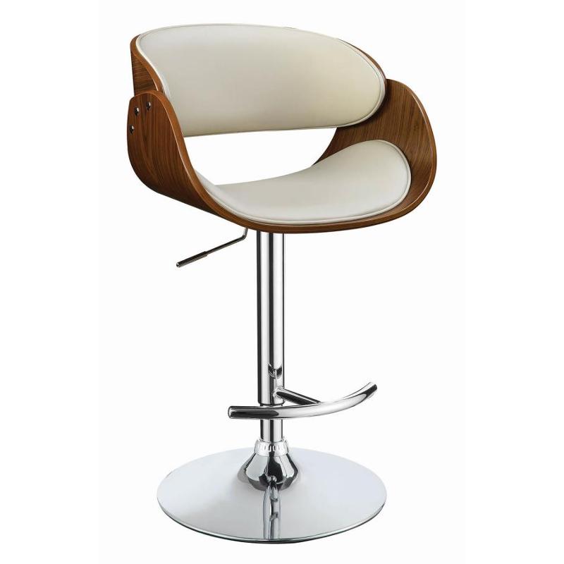 Perfecto para un bar en casa o una isla de cocina, este taburete de bar tiene una altura convenientemente ajustable para adaptarse a cualquier espacio. Bellamente diseñado, presenta un soporte simple y elegante que se ensancha elegantemente en una base redonda y resistente. Su asiento cuenta con una silueta fresca y curva con una sensación agradablemente moderna. El acabado brillante de su base crea un atractivo contraste con los tonos tenues de su asiento.