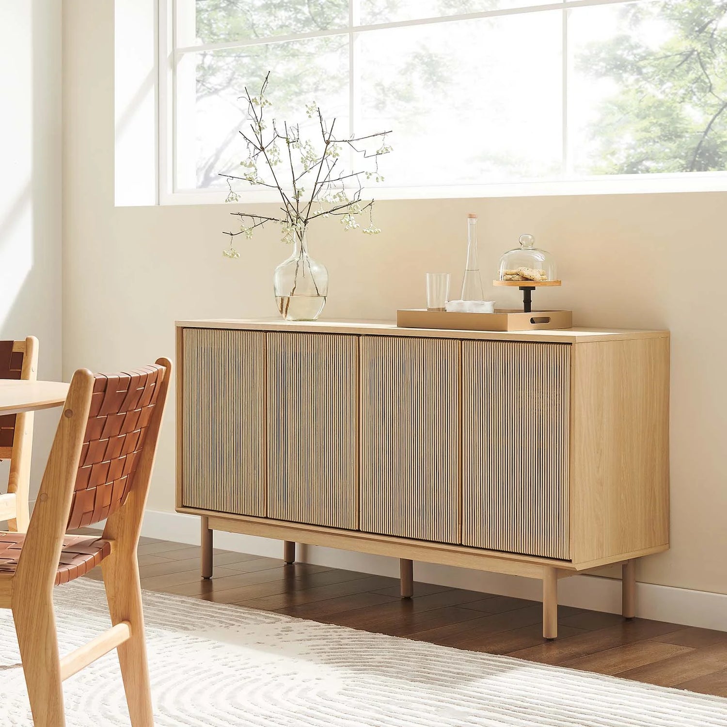 Una sinfonía de diseño minimalista y almacenamiento óptimo, el aparador Milàn de 63" garantiza que su espacio habitable sea elegante y organizado. Elaborado con MDF y aglomerado con laminado de vetas de madera, este aparador presenta elegantes detalles de cuerda tejida en las puertas.