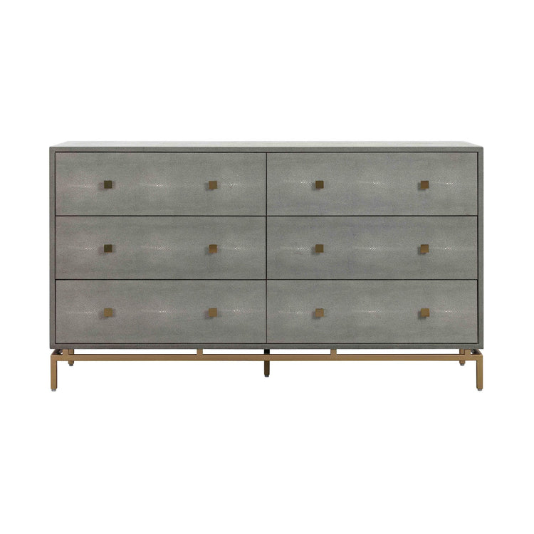 La atención al detalle se muestra perfectamente en la colección Mercedes. Todo, desde su acabado texturizado de piel de shagreen, sus espectaculares patas y manijas de latón hasta los cajones con acabado en madera de cerezo, se combinan maravillosamente para brindar elegancia y estilo contemporáneo a su espacio.