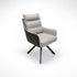 Silla de comedor de estética contemporánea que combina confort y carácter. Su asiento y respaldo acolchados ofrecen una sensación envolvente, mientras que el contraste entre el tapizado textil y el exterior en piel aporta profundidad y sofisticación al diseño.