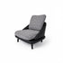 Este sillón lounge se distingue por su silueta envolvente y su combinación equilibrada de materiales. El tapiz texturizado aporta profundidad visual y una sensación táctil acogedora, mientras que la carcasa exterior en acabado liso genera un contraste elegante y contemporáneo.