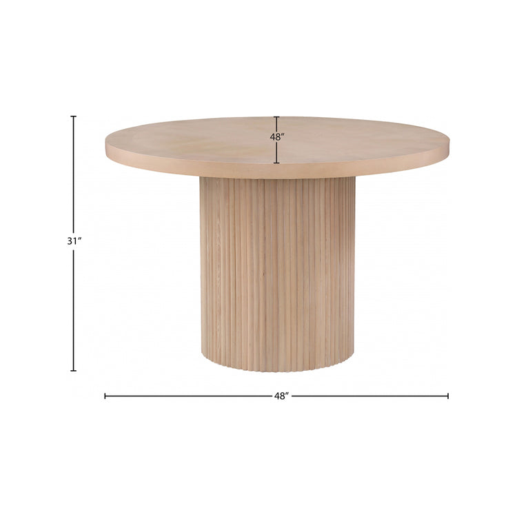 Base de madera maciza y una construcción resistente ofrecen una durabilidad impecable y una belleza extraordinaria. La parte superior redonda descansa sobre la base acanalada, lo que brinda mucho espacio para que familiares y amigos se sientan cómodos mientras comen.