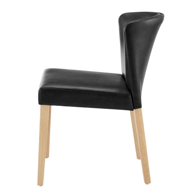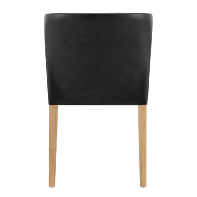 La silla de comedor con respaldo bajo Luca es elegante y versátil para diferentes interiores. El suave cuero sintético en tono negro también es ideal para el uso diario y está fabricado con un cojín de espuma de alta densidad para mayor comodidad. Fácil montaje. La pata es de madera maciza de caucho con acabado en color natural.