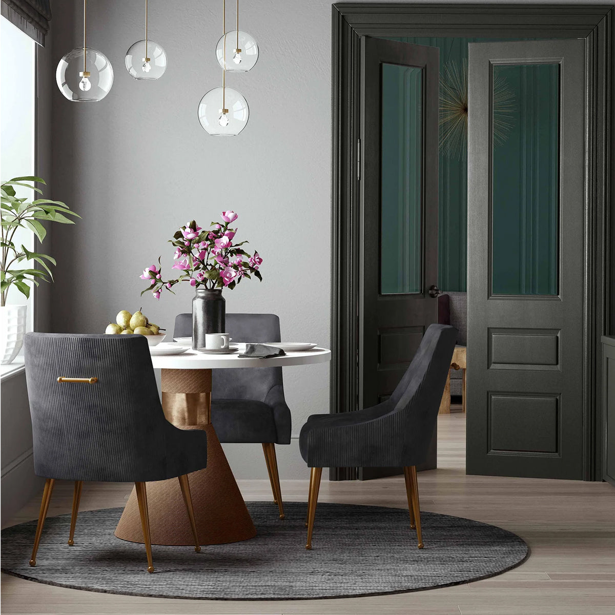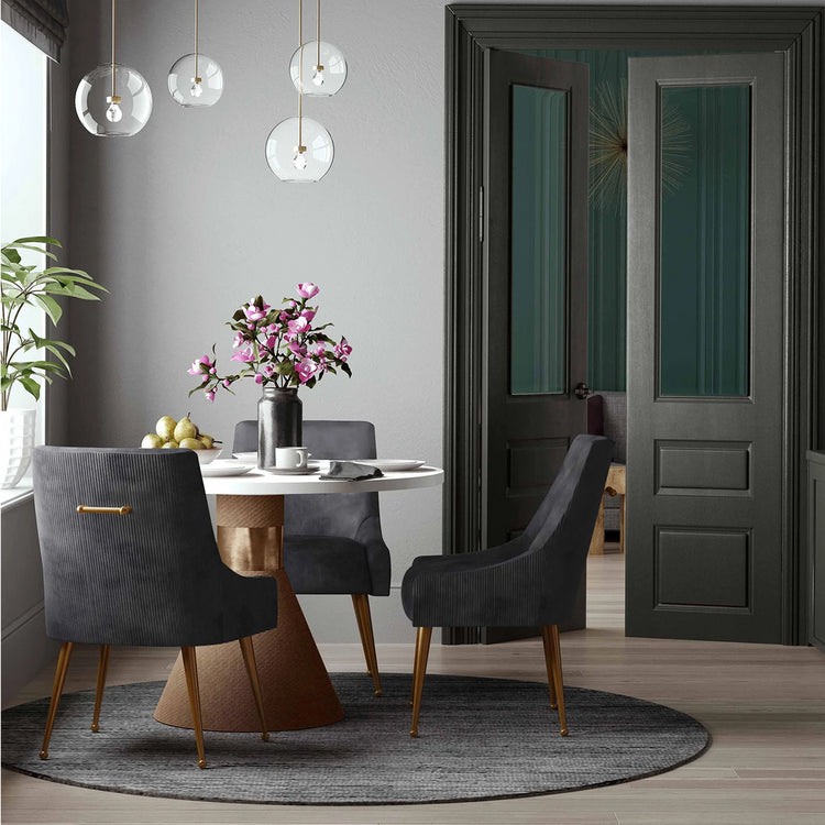 Deslumbra como silla de comedor o como pieza decorativa. Con fabulosas patas de acero inoxidable dorado. Colóquelas en cualquier habitación para lograr un efecto de lujo y glamour.