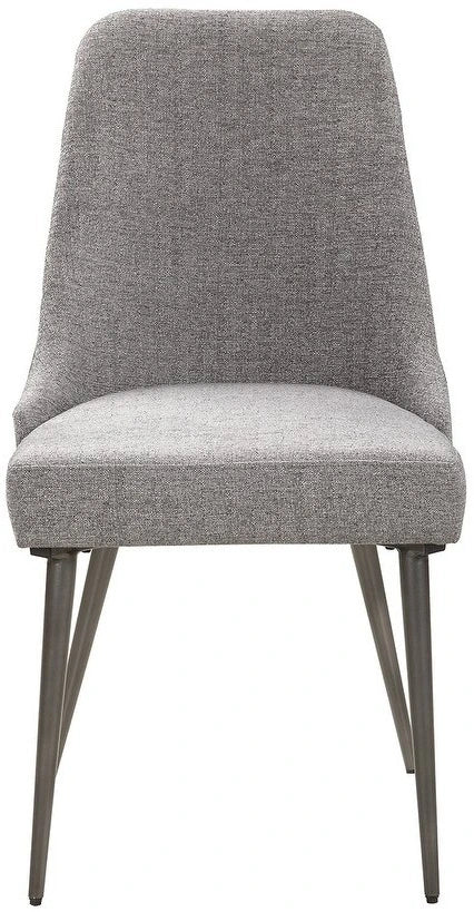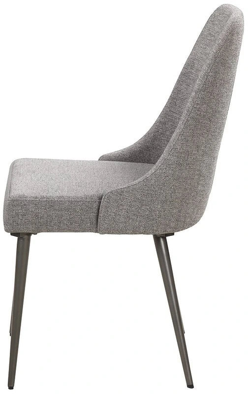 Inspire un motivo moderno con las líneas limpias y la sensación retro de esta silla de comedor sin brazos. El diseño moderno de mediados de siglo recibe un cambio de imagen contemporáneo con elegantes tonos monocromáticos. Las patas delgadas y cónicas con un acabado gris plomizo añaden una sensación sofisticada y abierta. La tela con textura gris cubre los cojines del respaldo y del asiento, con una silueta similar a un respaldo.