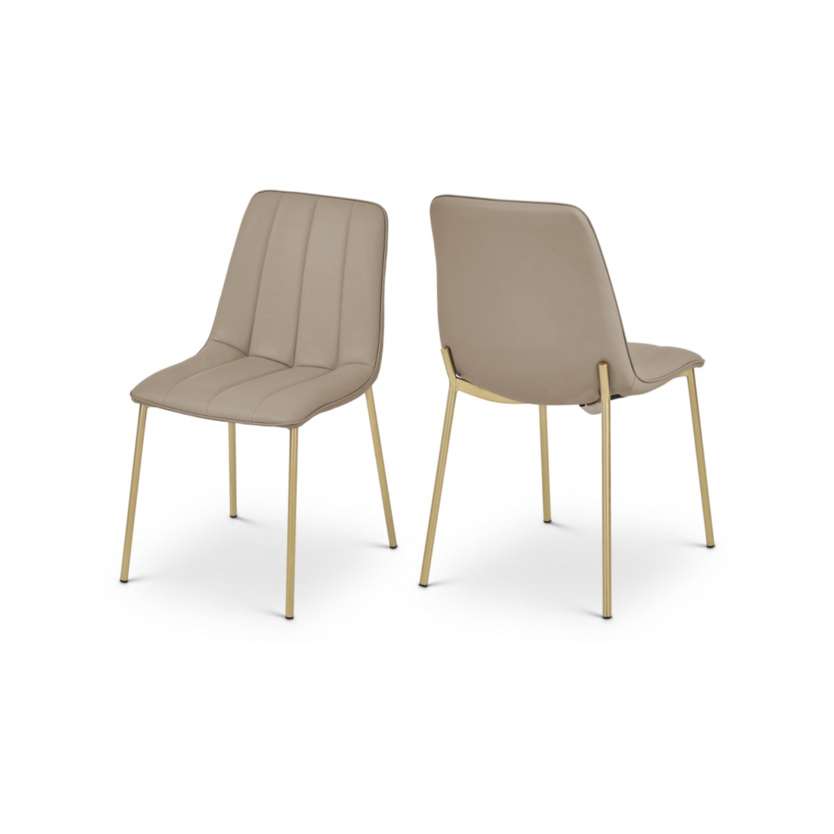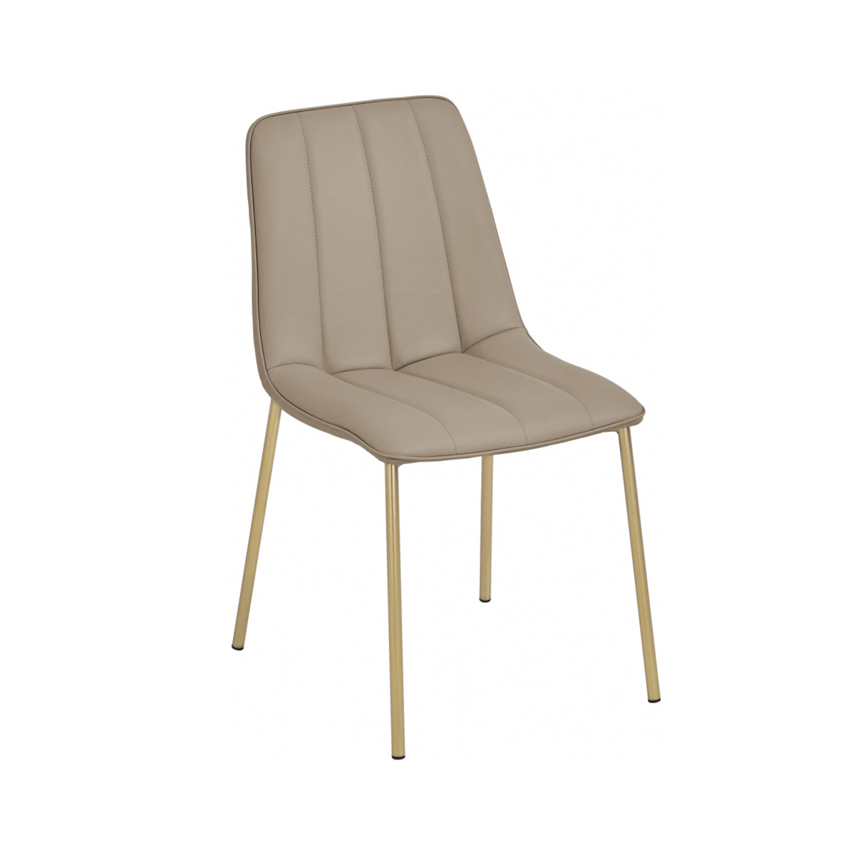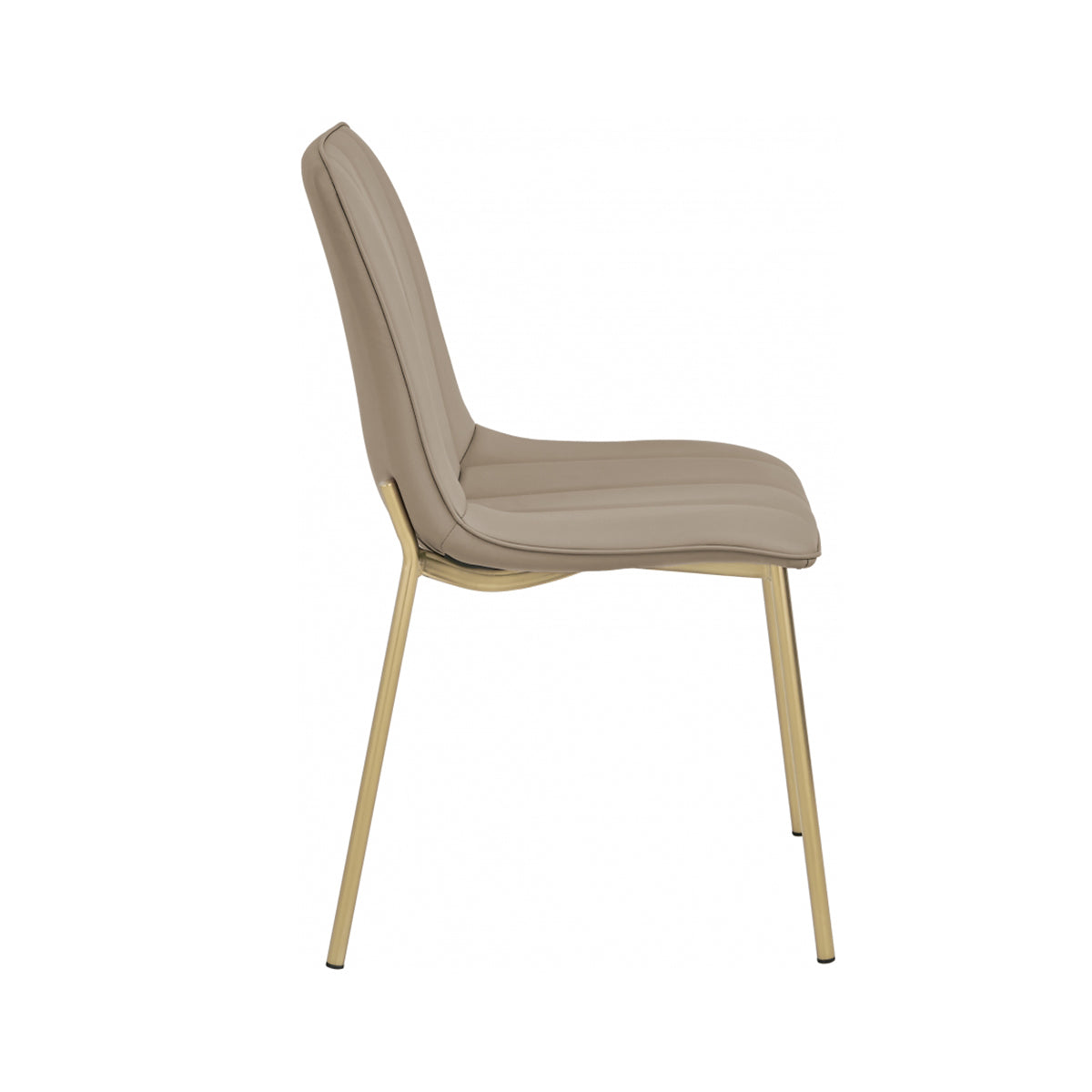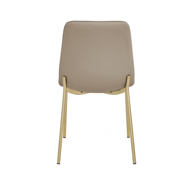 Sienta a tus invitados cómodamente en la silla de comedor de cuero vegano Carla. Esta silla clásica tiene un toque moderno con su suave tapicería de cuero vegano que parece real pero tiene requisitos mínimos de mantenimiento. Los mechones de canales en el respaldo de la silla se suman a su hermoso comportamiento general, mientras que las patas doradas cepilladas sobre un marco de metal le dan a la silla un toque duradero.