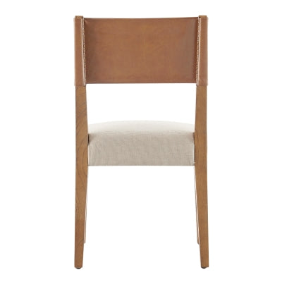 La silla de comedor/lateral clásica contemporánea presenta un atractivo de vanguardia con un respaldo actualizado de piel sintética en tono marrón complementado con un cojín suave en tono beige hecho de tela 100% PES. Las patas de madera maciza clara completan el diseño general.