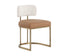 La silla de comedor Larissa combina una hermosa selección de materiales. El respaldo bajo, tapizado en tela belfast oatmeal, contrasta con los tonos cálidos del asiento tapizado en piel sintética napa color cognac, logrando una estética sofisticada. La estructura de acero inoxidable en acabado latón antiguo incluye una manija en la parte posterior, añadiendo un toque funcional y con estilo.
