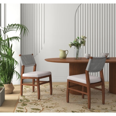 La silla de comedor Natalia es para propietarios que disfrutan de una apariencia abierta y aireada que transmite un lujo relajado. Una sutil paleta de colores en cuerdas grises sobre patas Seneca Brown con textura cepillada se suma al encanto sencillo de este diseño (marrón cálido, gris frío y marfil) y lo convierte en un complemento perfecto para comedores y grandes salas.