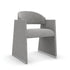 Una intersección lúdica entre líneas rectas y curvas, esta silla de comedor crea una declaración de sofisticación. Vestida en una tela metálica tejida en tono gris brillante, su forma geométrica presenta brazos laterales trapezoidales con un respaldo y asiento redondeados que parecen flotar dentro de dos planos perpendiculares.
