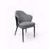 Silla de comedor de diseño envolvente y presencia sutil. Su respaldo curvo con brazos integrados ofrece una postura cómoda y acogedora, mientras que el tapizado textil aporta textura y calidez al conjunto.