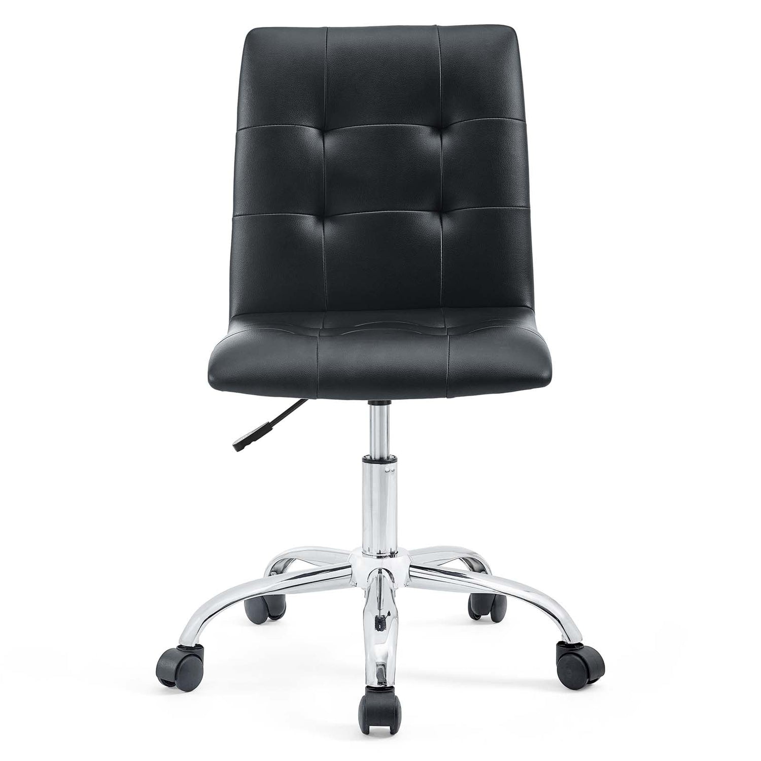 La etiqueta preside la silla de oficina sin brazos, con el estilo adecuado. Moderno al tacto, lujoso a la vista, cuenta con botones con mechones profundos, tapicería de piel sintética especializada y adornos elegantes para mayor delicadeza.