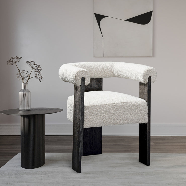 Prepárese para enamorarse del elegante diseño de esta silla de comedor. Diseñada para inyectar un toque moderno instantáneo a su espacio, esta silla cuenta con un marco de madera maciza para una mayor durabilidad y está equipada con una rica tela boucle color crema para un acabado de lujo.