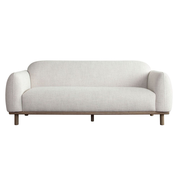 El sofá Larson es una adición sencilla y elegante para la decoración de cualquier habitación. Con su asiento y respaldo fijos, tapizados en una tela de poliéster tono cebada claro y acentuados por detalles en madera de roble almendra y patas en el mismo acabado, el sofá Larson es un clásico atemporal para tu hogar.