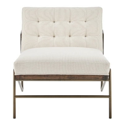 Retro con un atractivo artesanal es la última silla. Los bordes de madera maciza alrededor del marco y las patas de tubo de acero de bronce intenso cautivan por su diseño angular. La tapicería suave en tonos monocromáticos completa el ambiente vintage.