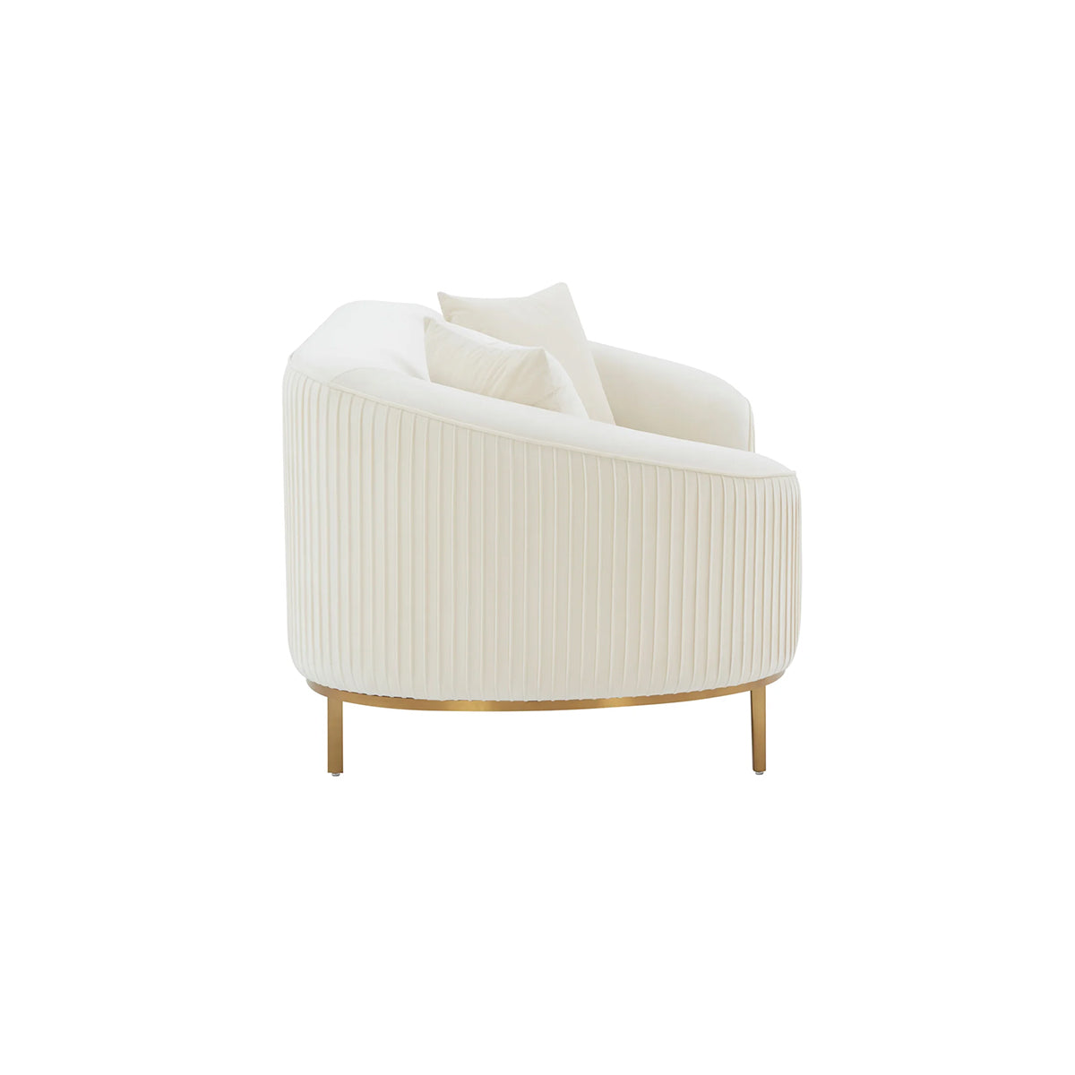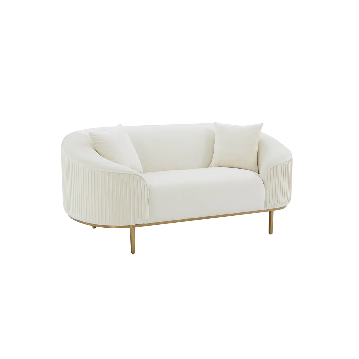 Transforma tu espacio con el Loveseat plisado de terciopelo . Con una construcción interior de madera de pino y patas doradas de acero inoxidable, ¡este sofá de dos plazas está diseñado para durar! Se incluyen dos cojines de terciopelo a juego para agregar un toque extra de felpa a este sofá de dos plazas.