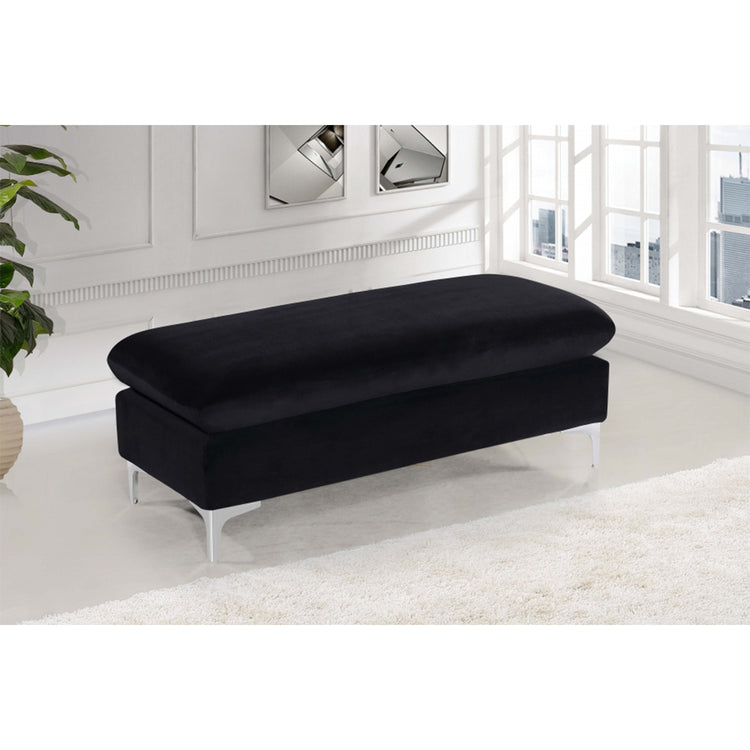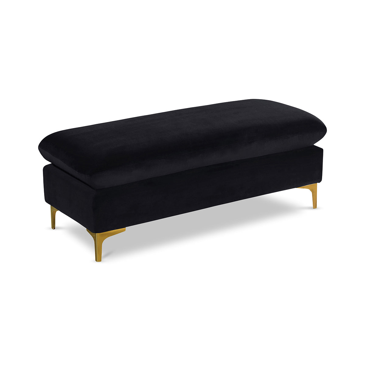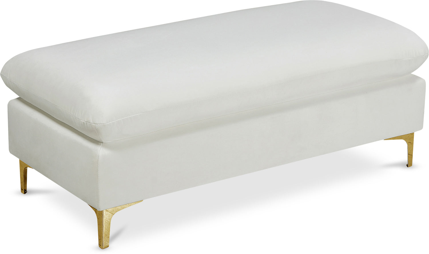 Este elegante otomana está recubierto de un rico terciopelo para darle un toque de estilo neutro a su habitación y al mismo tiempo mimar sus pies con comodidad al final del día.