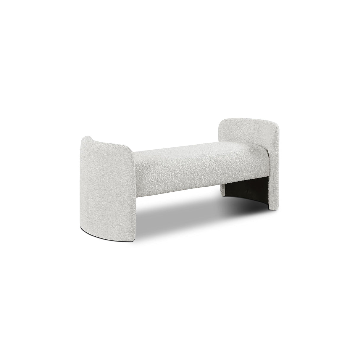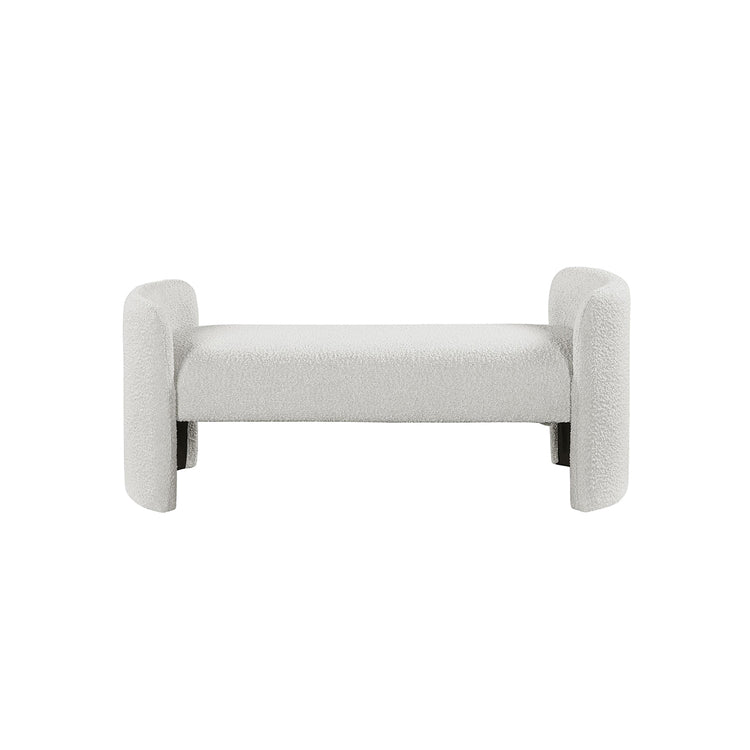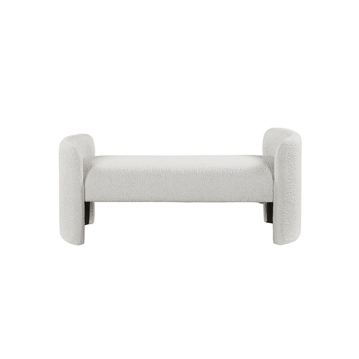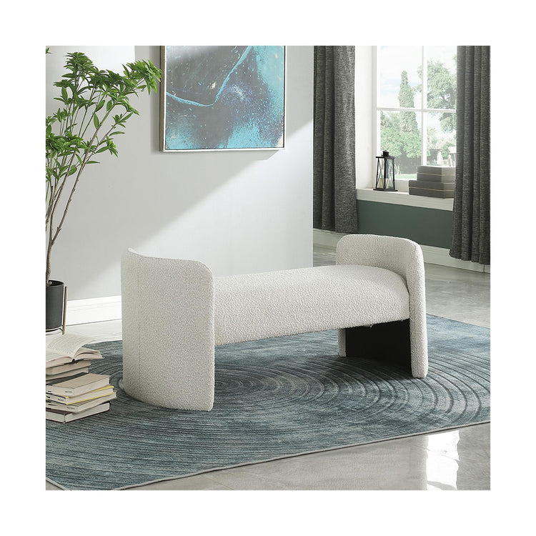 Los brazos redondeados y el estilo sencillo le dan a este banco un aire de estilo contemporáneo, mientras que la rica tela boucle le permite combinar fácilmente con la paleta de colores de su habitación.