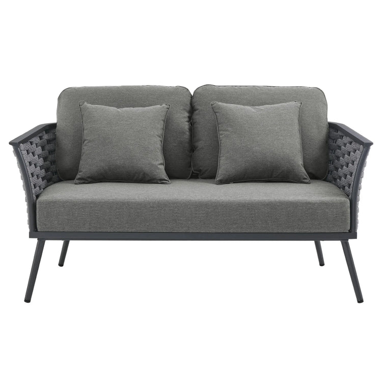 Reúna a familiares y amigos para disfrutar de un clima agradable y una buena conversación con la colección Salvia. Con un aspecto moderno y contemporáneo,  cuenta con un respaldo de cuerda de tela de poliéster tejido y un marco de aluminio acampanado con recubrimiento en polvo, mientras que los cojines de tela impermeables para todo clima con un denso acolchado de espuma brindan un lugar relajante para descansar.