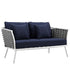 Reúna a familiares y amigos para disfrutar de un clima agradable y una buena conversación con la colección Salvia. Con un aspecto moderno y contemporáneo,  cuenta con un respaldo de cuerda de tela de poliéster tejido y un marco de aluminio acampanado con recubrimiento en polvo, mientras que los cojines de tela impermeables para todo clima con un denso acolchado de espuma brindan un lugar relajante para descansar.