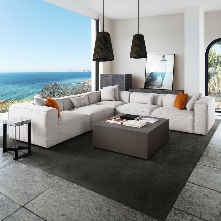 Seccional en tela con soportes entrelazados (incluye almohadas)