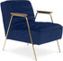 Vuélvete moderno en tu sala, estudio u otro espacio con esta silla decorativa de terciopelo. El respaldo y el asiento tienen mechones de canal para mayor resistencia y belleza duradera. La estructura de metal agrega una calidad duradera a esta silla, y las patas de metal dorado cepillado y los brazos de madera le dan un ambiente contemporáneo definitivo.